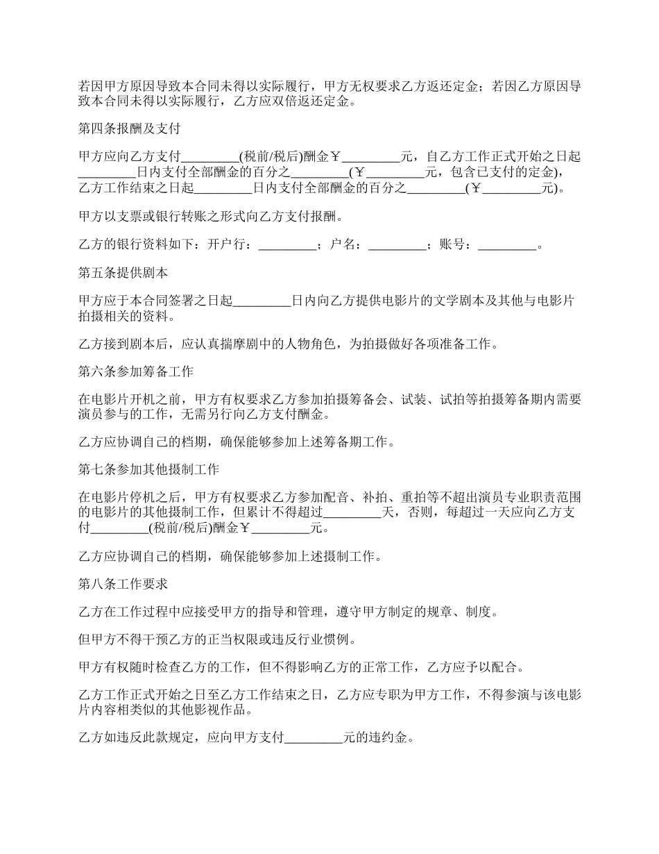 影视演员聘用劳动合同.docx