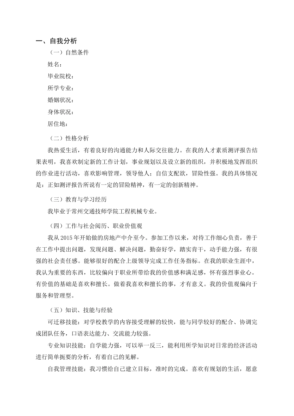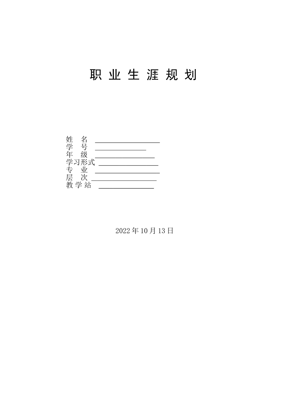 职业生涯规划姓名学号年级学习形式专业层次教学站2022年10月13日一、自我分析(一)自然条件姓名:毕业院校:所学专业:婚姻状况:身体状况:居住地:(二)性格分析我热爱生活,有着良好的沟通能力和人际交往能...