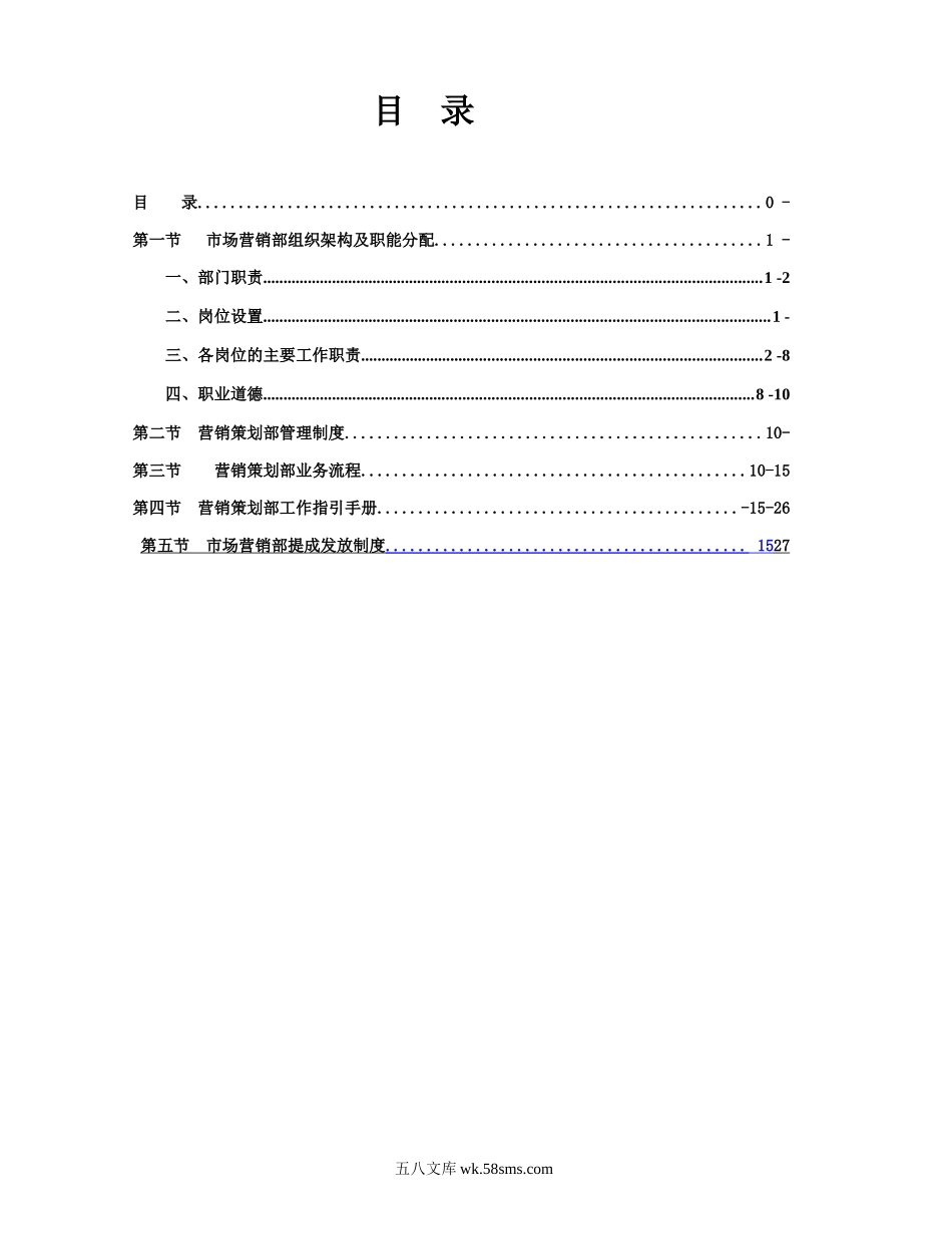 目录目录.....................................................................0-第一节市场营销部组织架构及职能分配........................................1-一、部门职责.................................