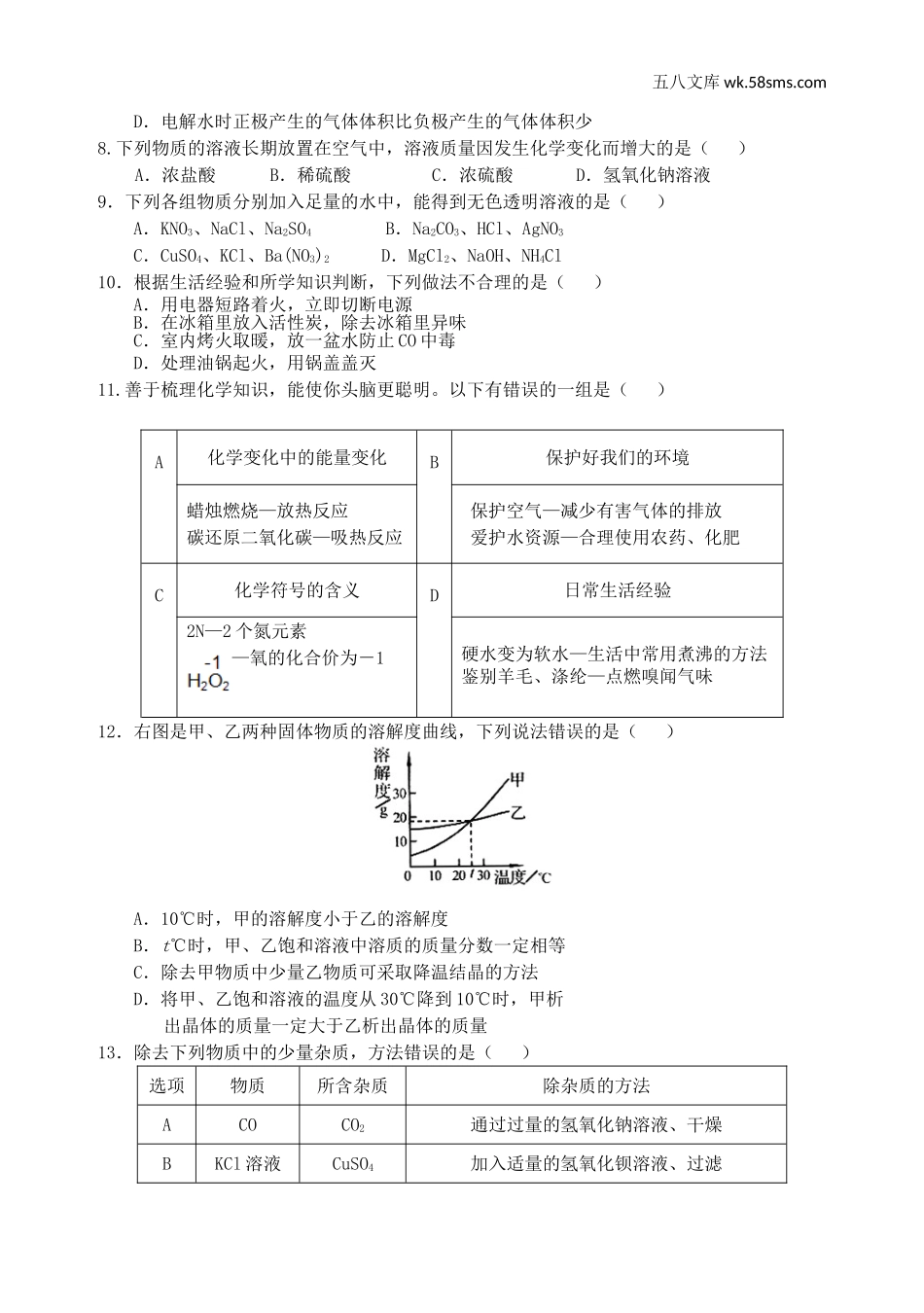中考模拟试卷_中考化学模拟试卷36_第2页