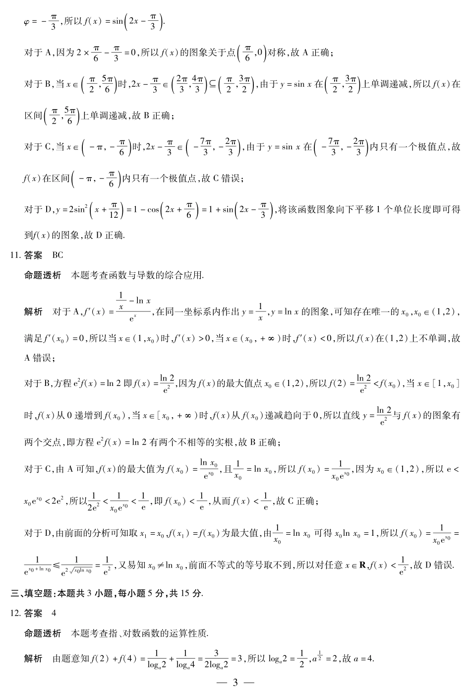 【数学答案】天一大联考湖南省2026届高三年级上学期开学考.pdf_第3页