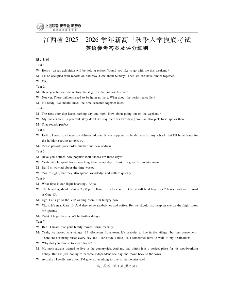 英语试卷8.13答案【江西卷】【超清版】江西省上进联考2025-2026学年新高三秋季入学摸底考试(8.28-8.29).pdf_第2页