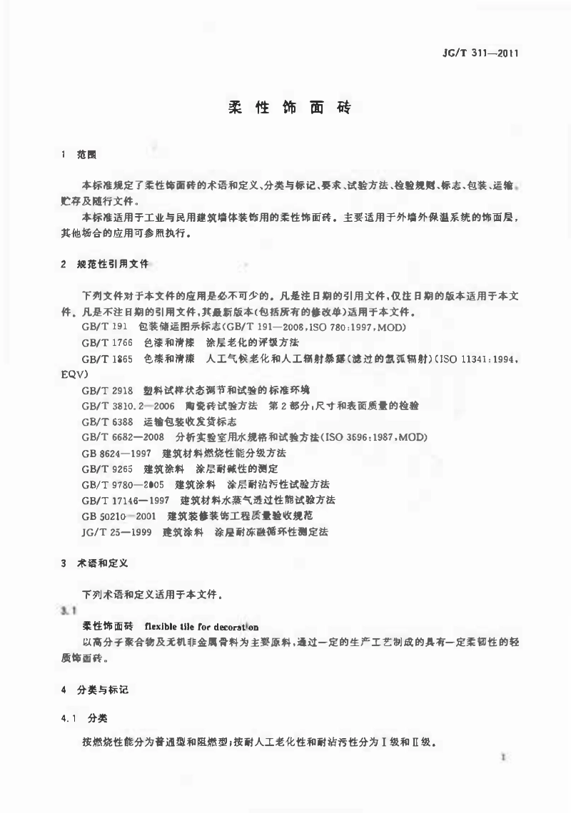 JGT 311-2011 柔性饰面砖规范.pdf_第1页