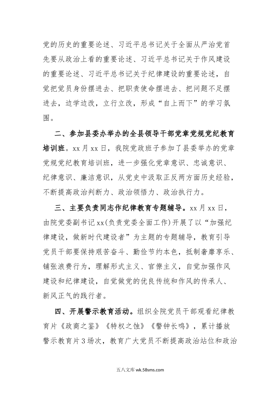 xx纪律教育学习月活动情况汇报.docx