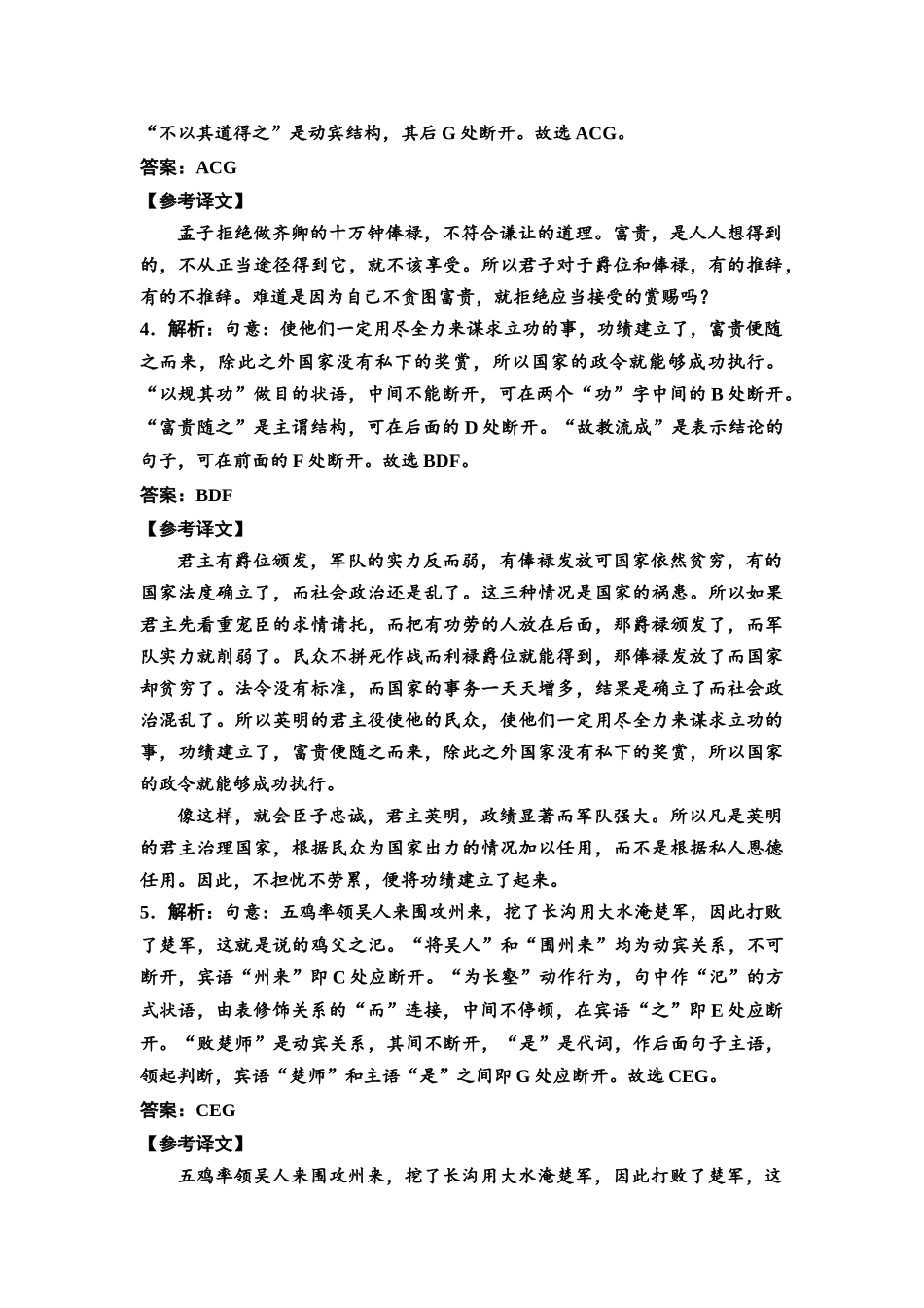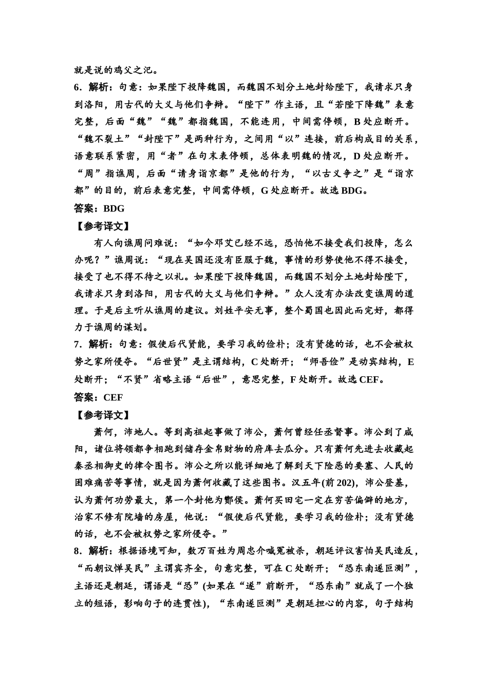 专项对点练221.解析:句意:最初以性命相许以表忠心,体态容貌都十分恭顺;最终却背离而去远走高飞,此时的地位名声都已成就了。“体面俱柔”中“体”作主语,“俱柔”作谓语,后面要停顿;“初则许之以死殉”处...