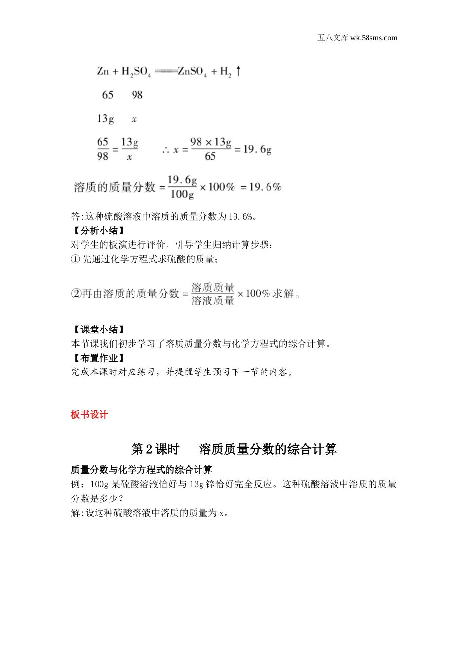 第3课时 溶质质量分数的综合计算(教案)_第2页