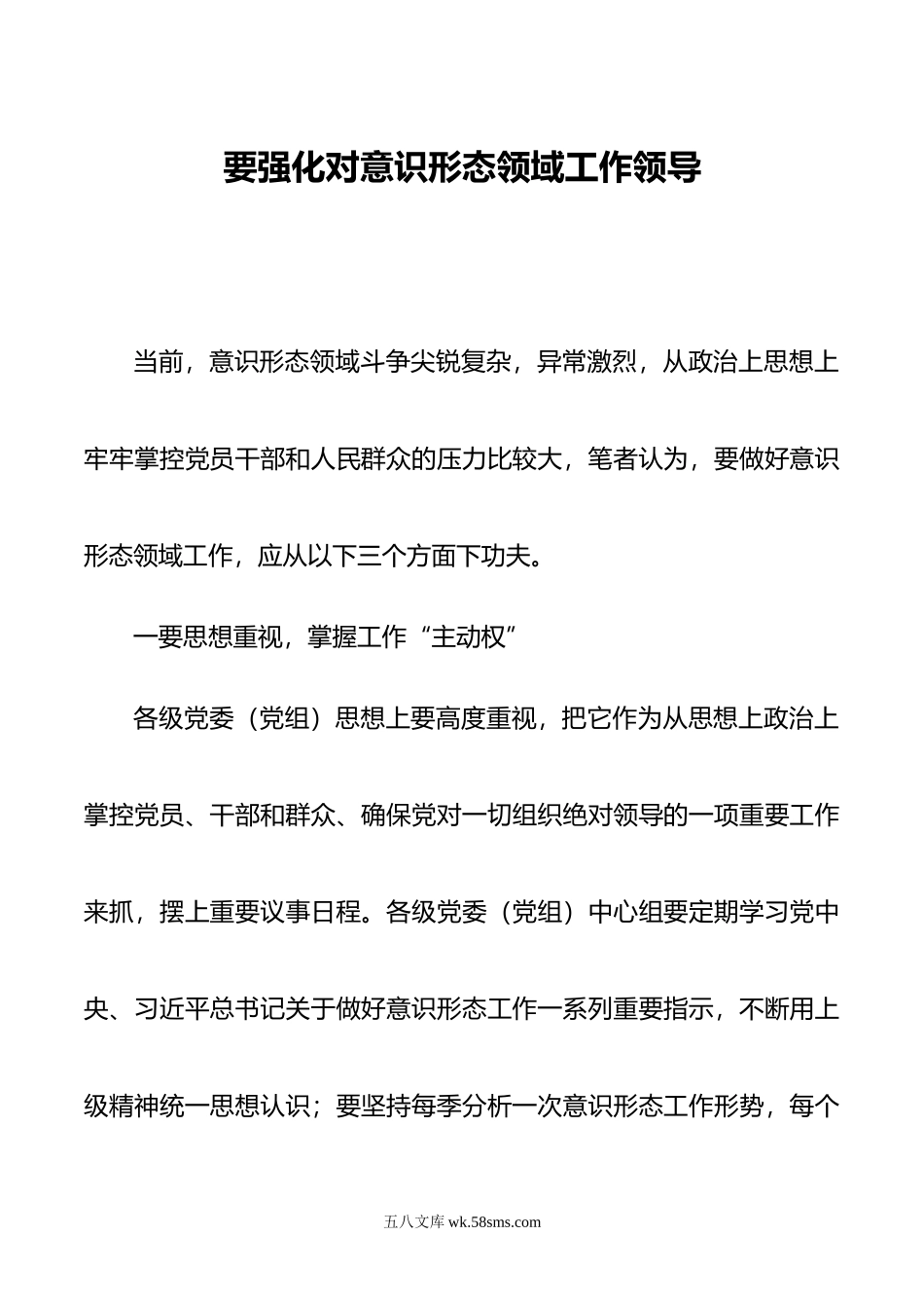 要强化对意识形态领域工作领导.doc