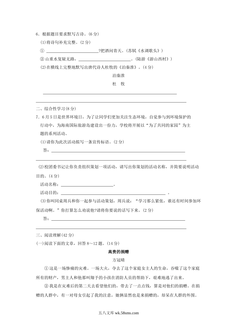 2009年海南省三亚市中考语文真题及答案.doc_第2页
