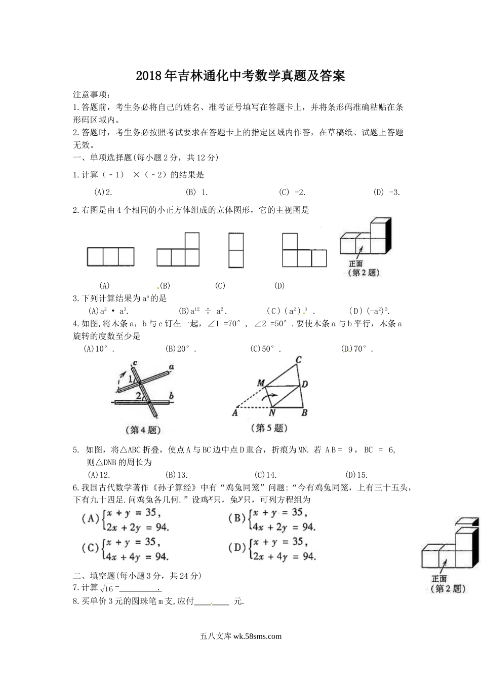 2018年吉林通化中考数学真题及答案.doc_第2页