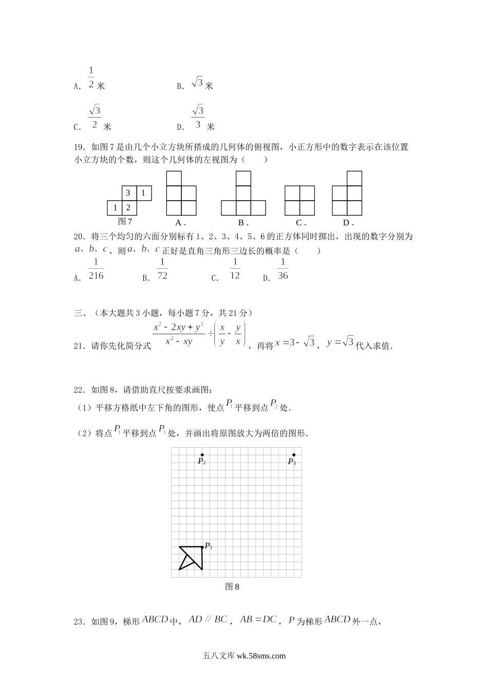 2009年青海省海东中考数学真题及答案.doc_第3页