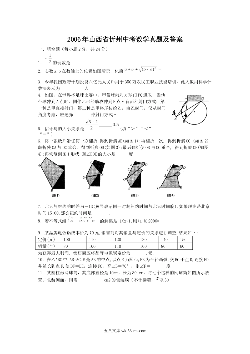 2006年山西省忻州中考数学真题及答案.doc_第1页