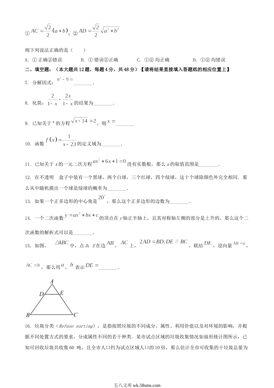 2023年上海普陀中考数学真题及答案.doc_第2页