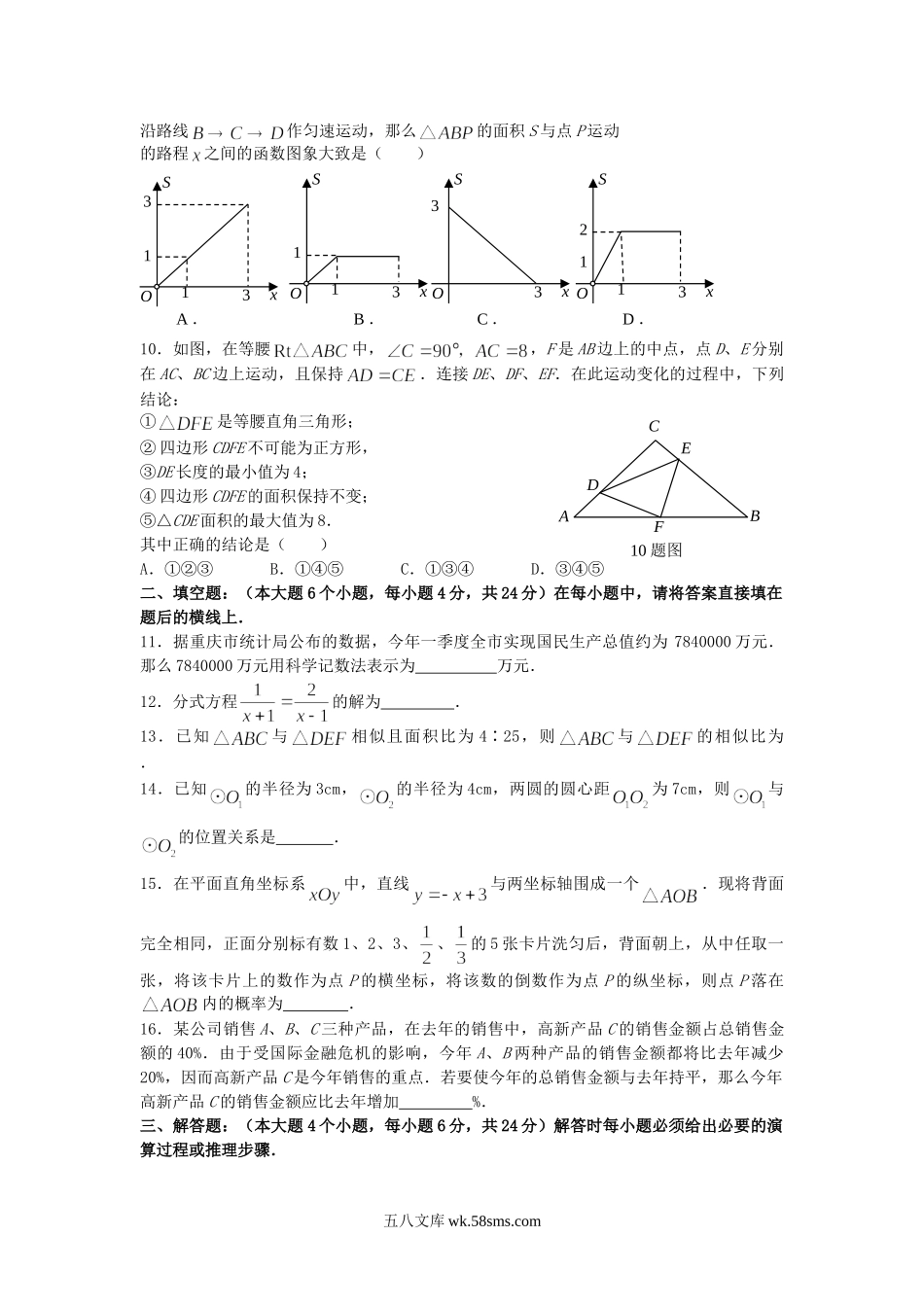 2009年重庆万盛中考数学真题及答案.doc_第2页