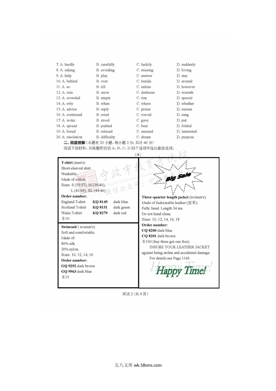 2020年浙江宁波中考英语真题及答案五八文库wk.58sms.com五八文库wk.58sms.com五八文库wk.58sms.com五八文库wk.58sms.com五八文库wk.58sms.com五八文库wk.58sms.com五八文库wk.58sms.com五八文库wk.58sms.com五八...