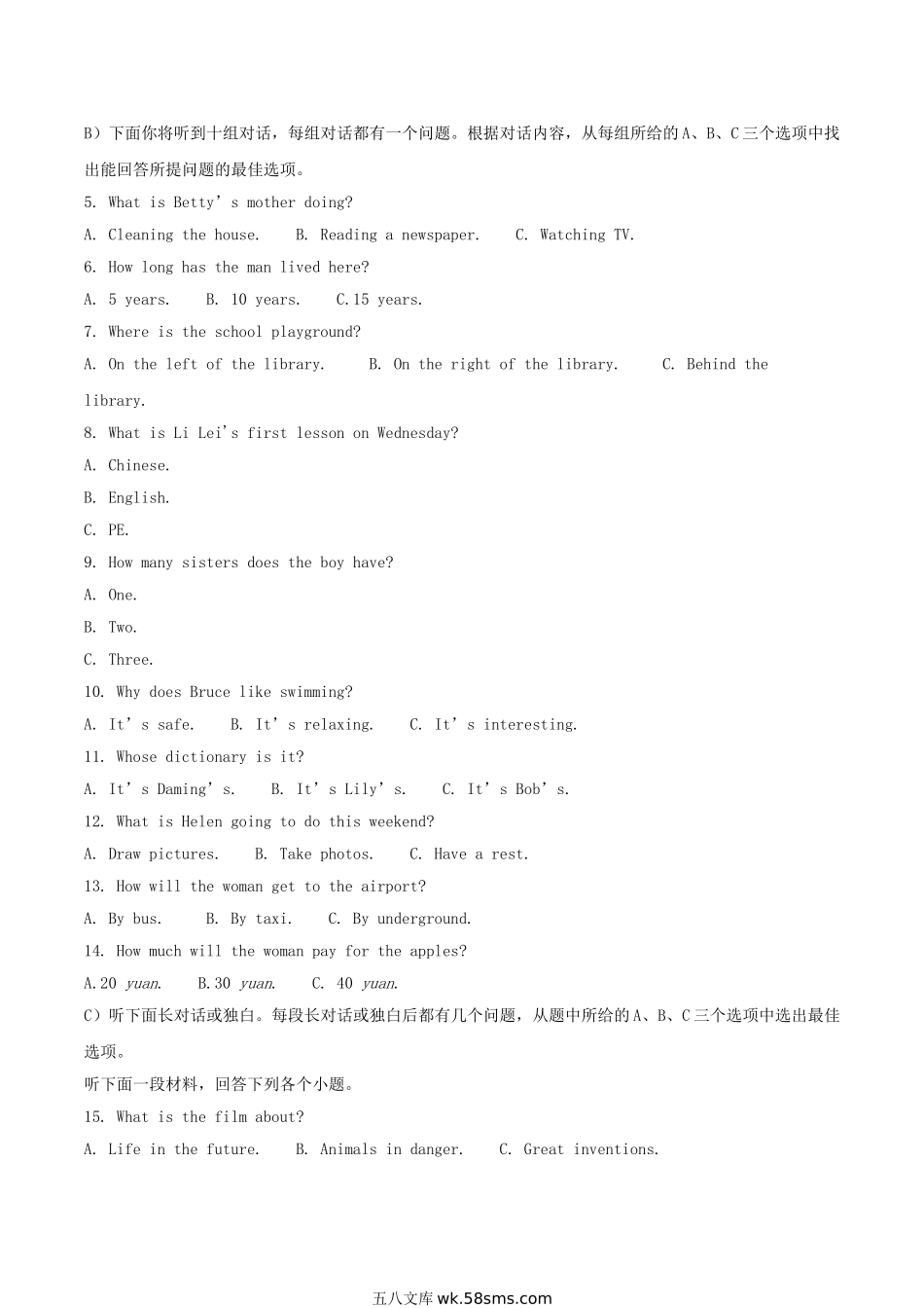 2020年天津大港中考英语真题及答案本试卷分为第Ⅰ卷(选择题)、第Ⅱ卷(非选择题)两部分。第Ⅰ卷为第1页至第8页,第Ⅱ卷为第9页至第12页。试卷满分120分。考试时间100分钟。答卷前,请你务必将自己的姓名、考生...