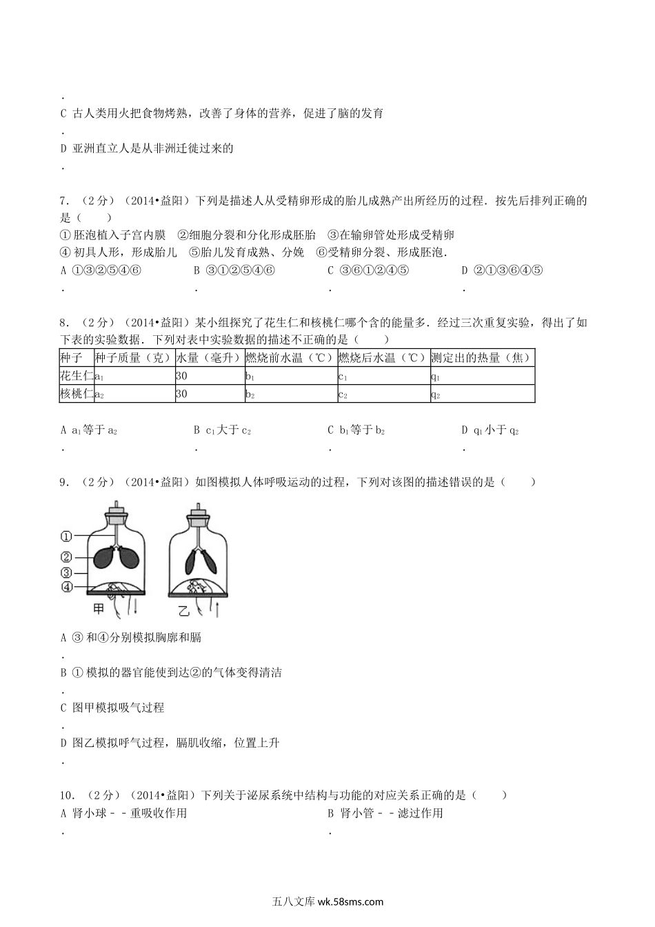 2014年湖南省益阳市中考生物真题及答案.doc_第2页