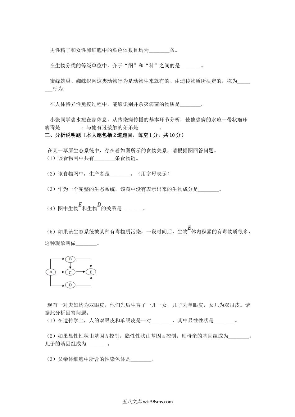 2017年甘肃省金昌市中考生物试题及答案.doc_第2页
