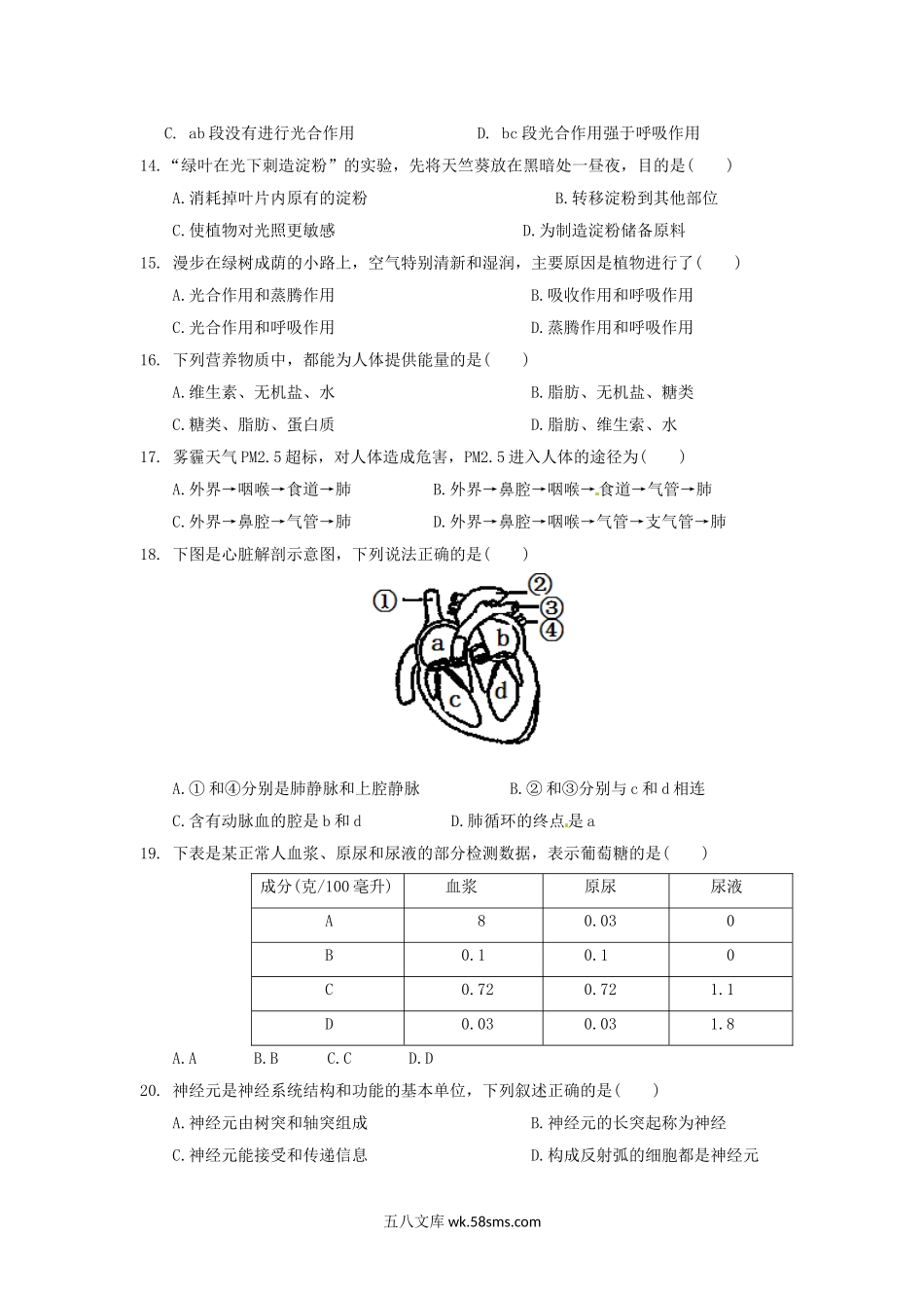 2017年广东省汕尾市中考生物真题及答案.doc_第2页