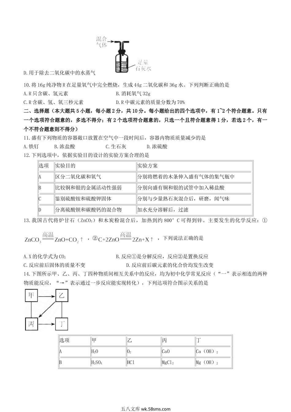 2021年天津红桥中考化学试题及答案.doc_第2页