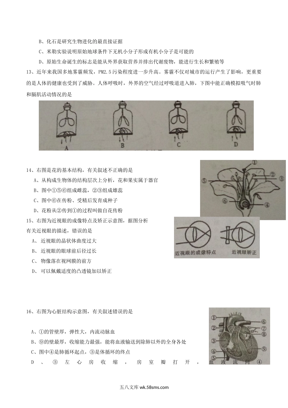 2017年四川内江市中考生物真题及答案.doc_第2页