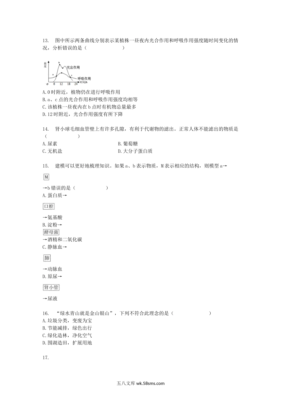 2018年广东省潮州市中考生物试题及答案.doc_第3页