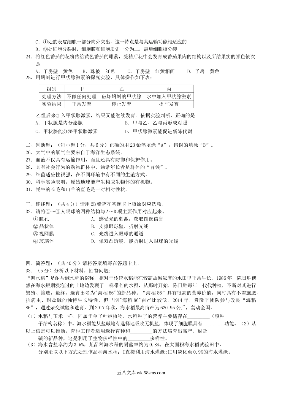 2018年湖南省湘潭市中考生物真题及答案.doc_第2页