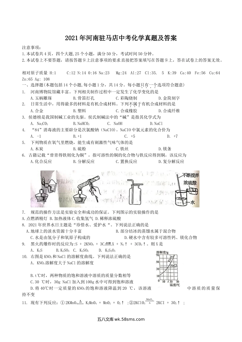 2021年河南驻马店中考化学真题及答案.doc_第1页