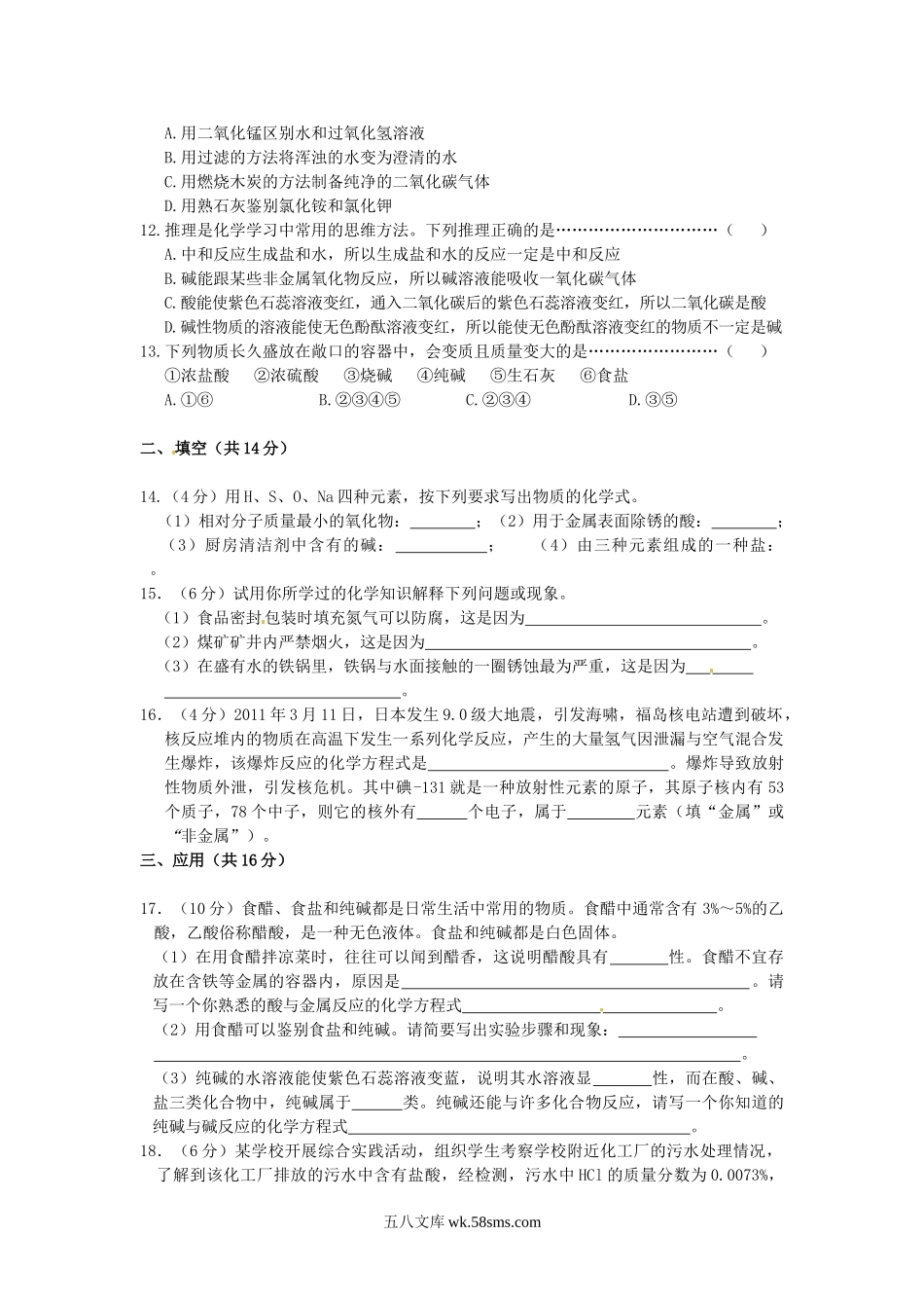 2011年宁夏中卫中考化学真题及答案.doc_第2页
