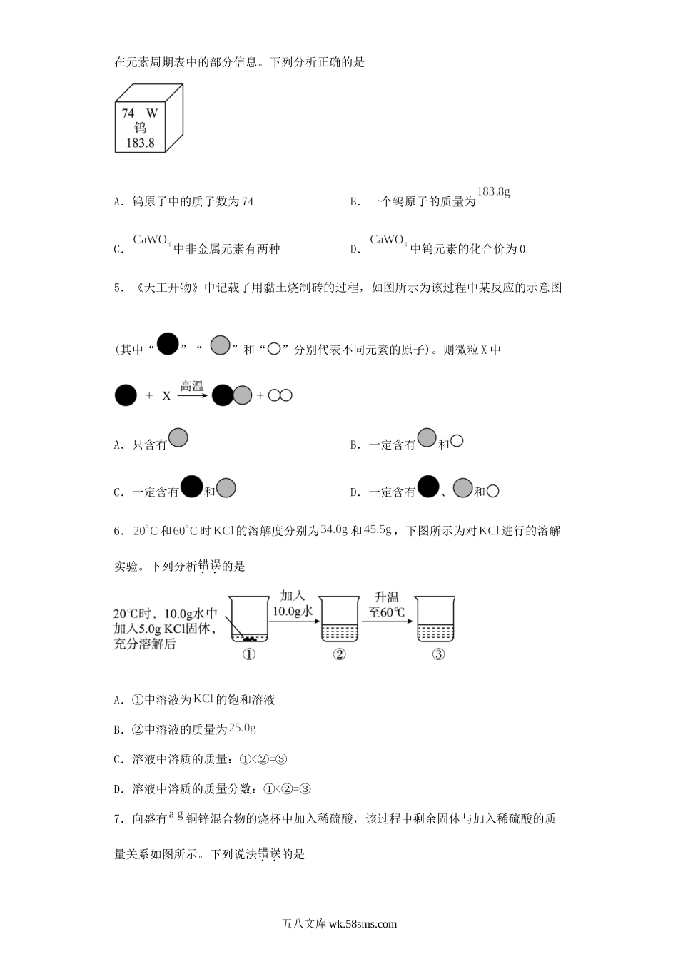 2023年河北张家口中考化学真题及答案.doc_第3页
