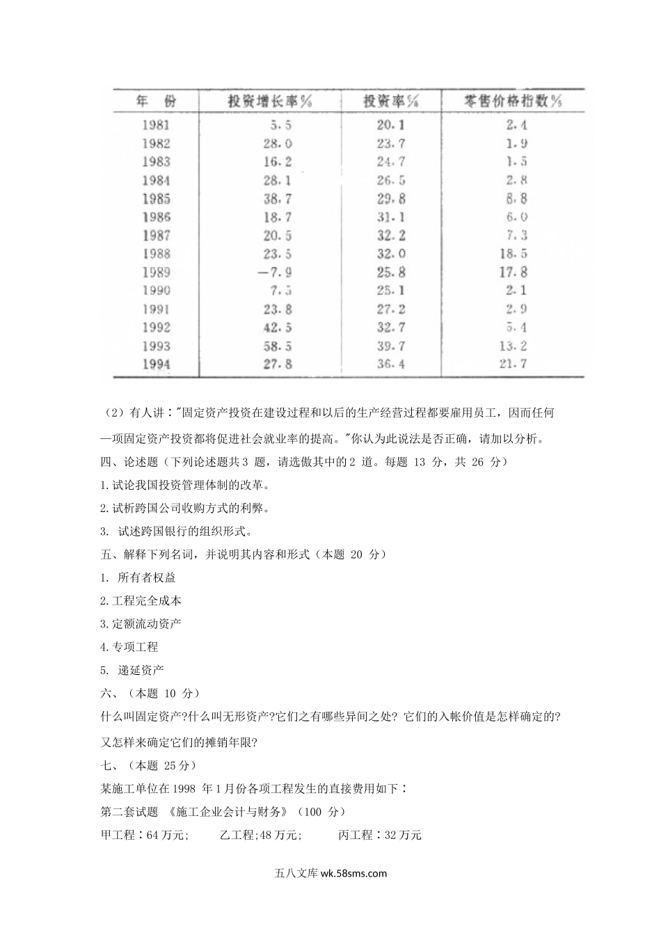 1998年上海财经大学投资经济与国际投资考研真题.doc_第2页