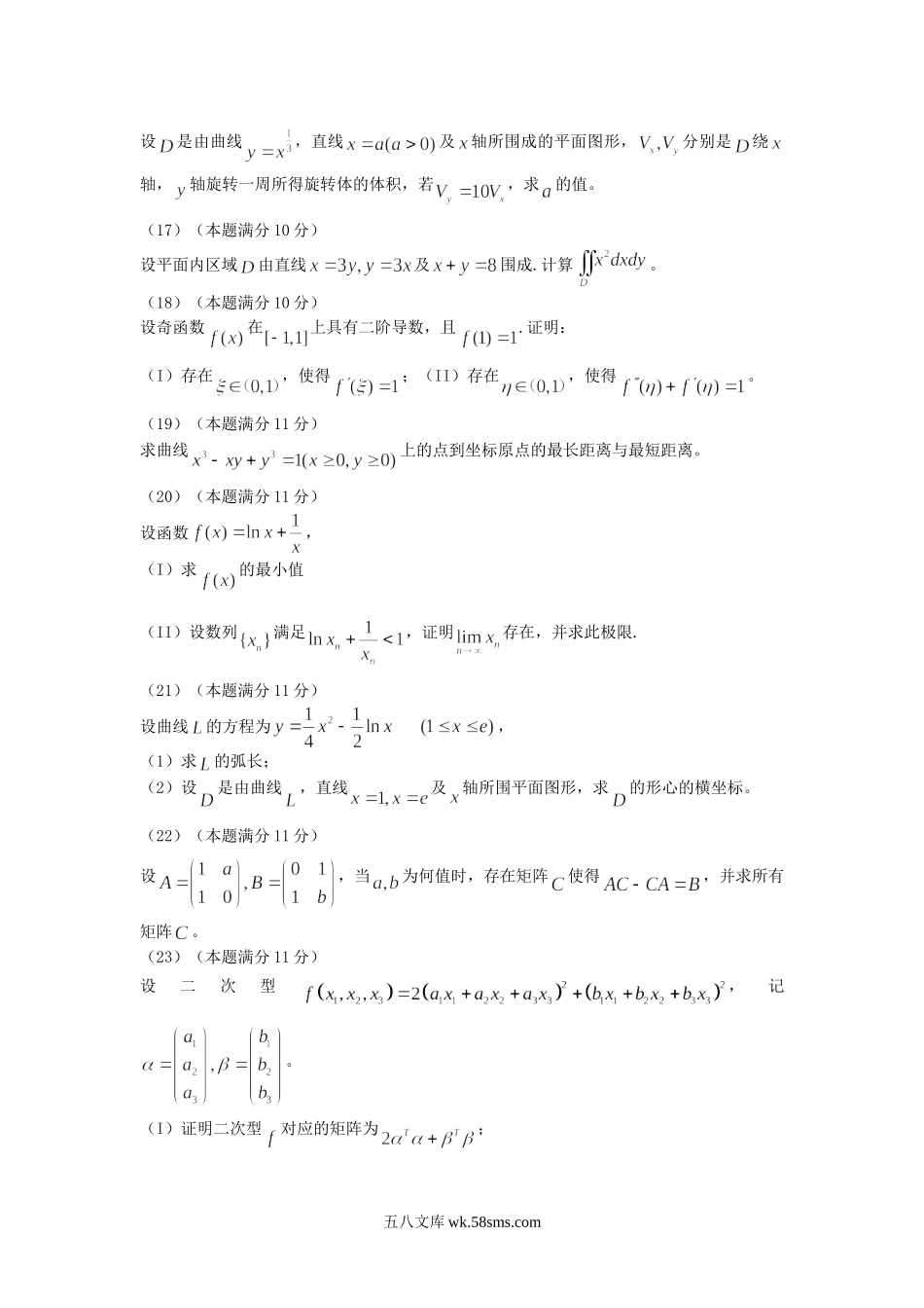 2013辽宁考研数学二真题及答案.doc_第2页