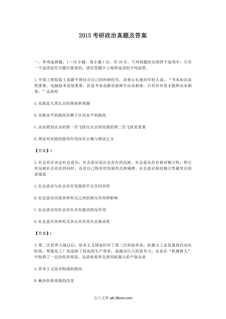 2015考研政治真题及答案.doc