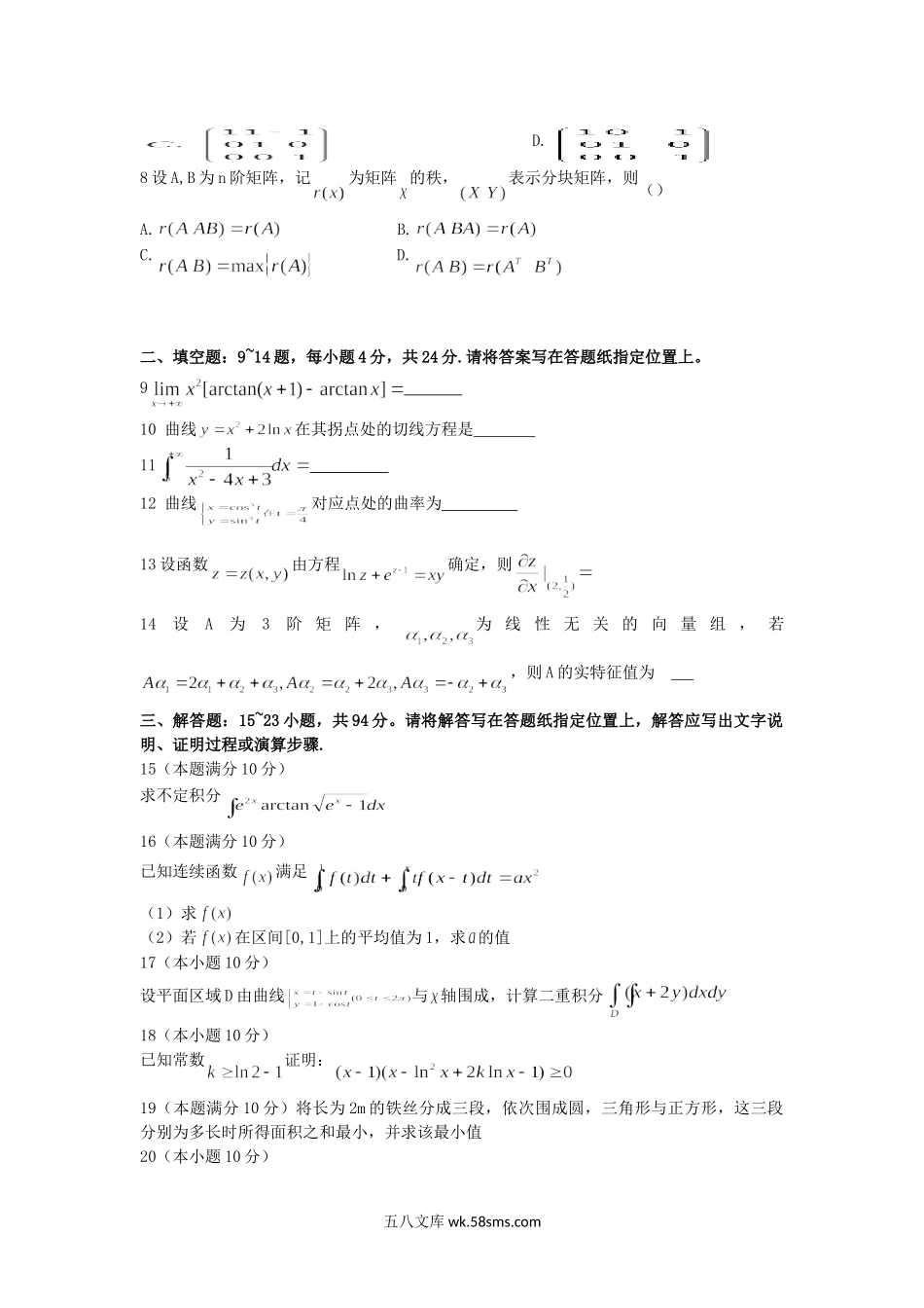 2018吉林考研数学二真题及答案.doc_第2页