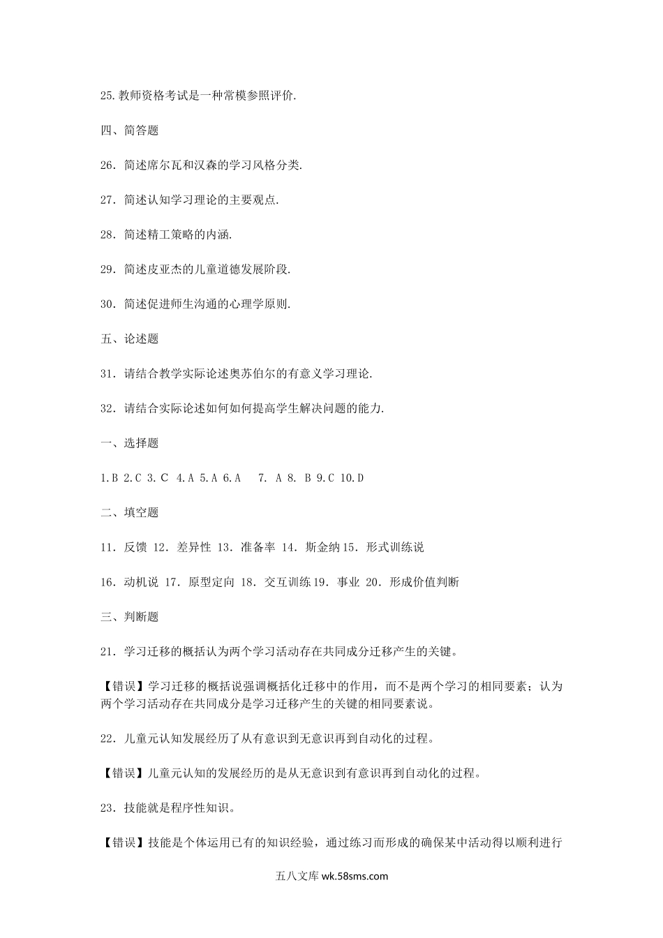 2011上半年北京教师资格考试中小学教育心理学真题及答案.doc_第3页
