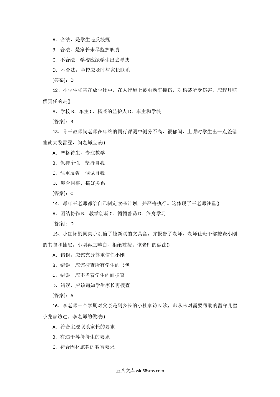 2015下半年甘肃教师资格小学综合素质真题及答案.doc