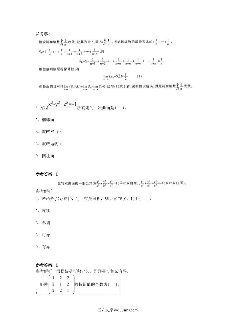 2016上半年北京教师资格高中数学学科知识与教学能力真题及答案一、单项选择题(本大题共8小题,每小题5分,共40分)1.参考答案:A参考解析:2.下列级数中,不收敛的是()。参考答案:C五八文库wk.58sms.com参考解析...