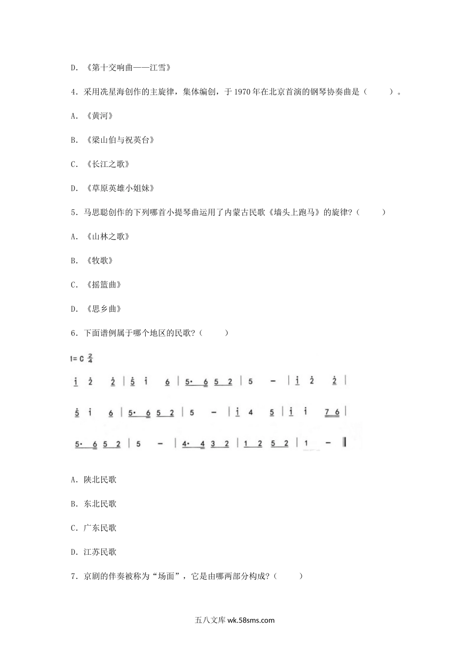 2019上半年吉林教师资格初中音乐学科知识与教学能力真题及答案.doc_第2页