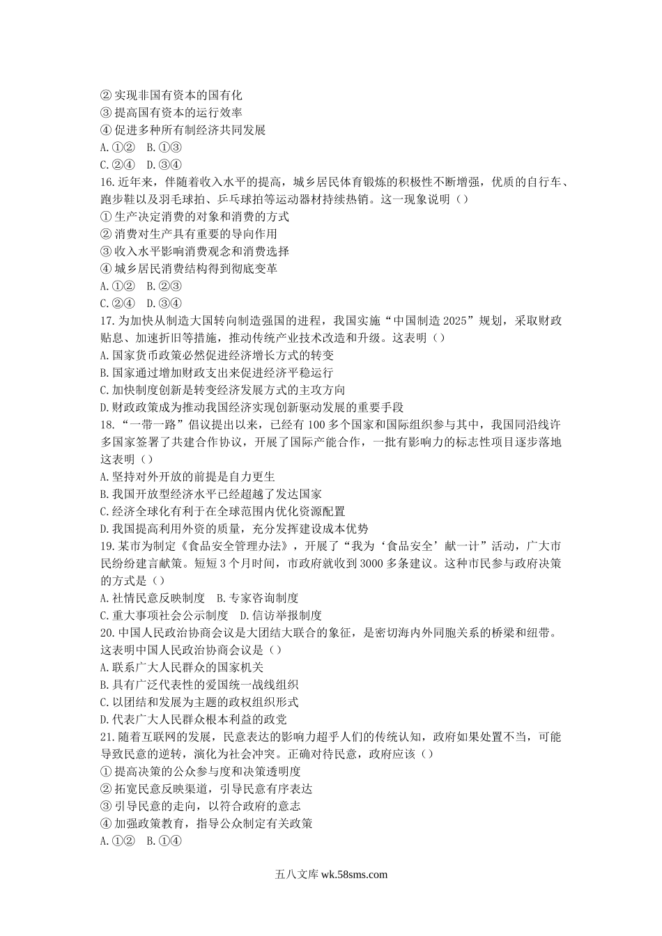 2019上半年吉林教师资格考试初中政治学科知识与教学能力真题及答案解析.doc_第3页