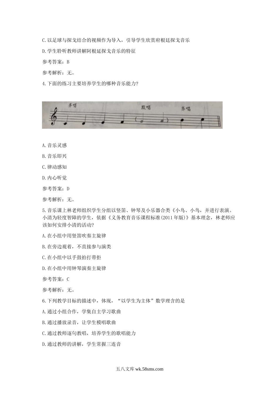 2019下半年黑龙江教师资格证考试初中音乐学科知识与教学能力真题及答案.doc_第3页