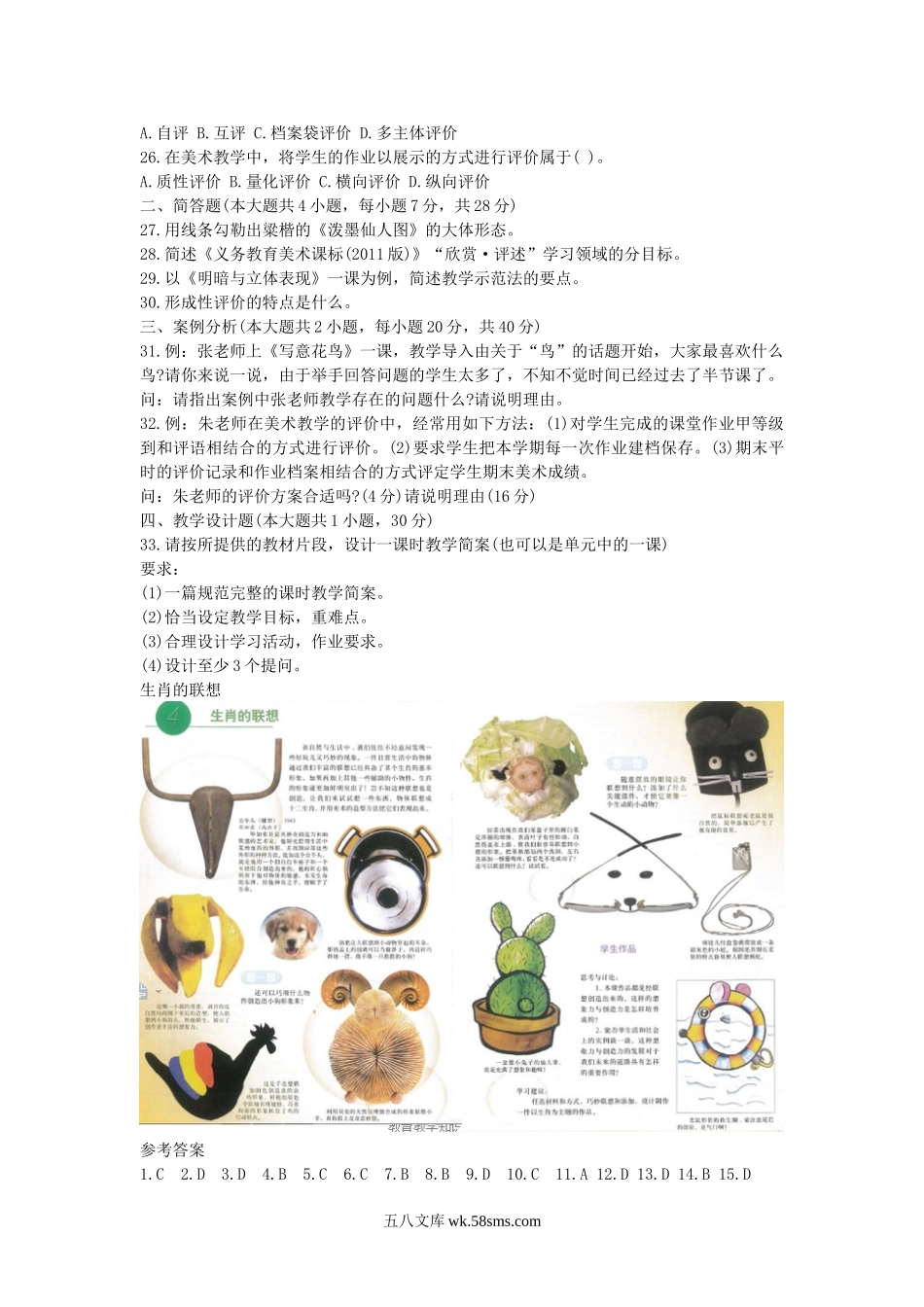 2019下半年山西教师资格考试初中美术学科知识与教学能力真题及答案.doc
