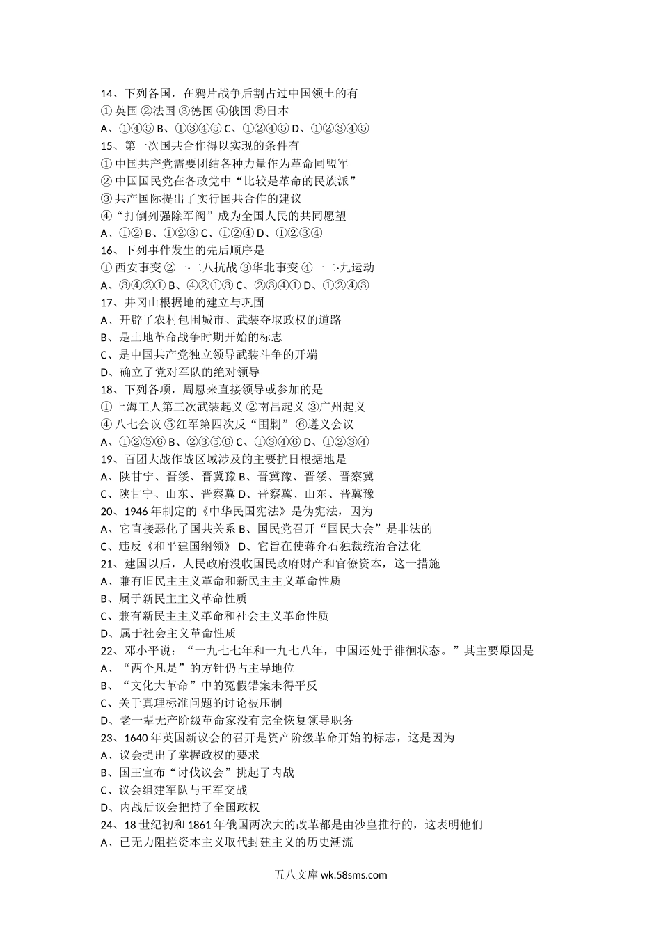 1998年湖南高考历史真题及答案一、选择题:本大题共34小题,每小题1.5分,共51分。在每小题列出的四个选项中,只有一项是符合题目要求的。1、半坡人和河姆渡人生活的共同点是A、普遍使用打制石器B、制造陶器C、种...