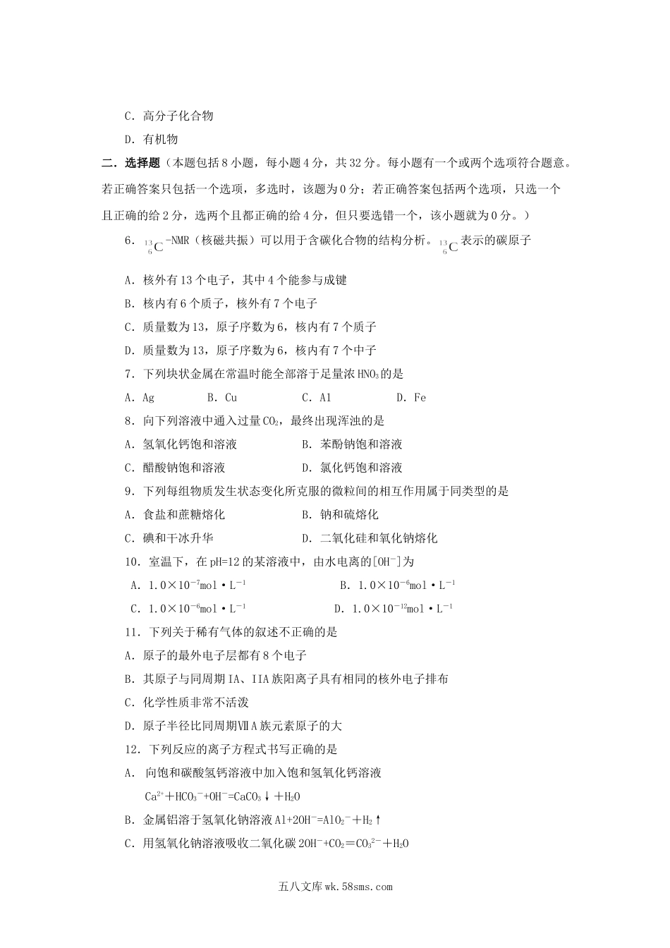 2000年湖北高考化学真题及答案本试卷分第Ⅰ卷(选择题)和第Ⅱ卷(非选择题)两部分,第Ⅰ卷1至4页,第Ⅱ卷5至9页,共150分。考试时间120分钟。第Ⅰ卷(选择题共83分)注意事项:1.答第Ⅰ卷前,考生必将自己的姓名...