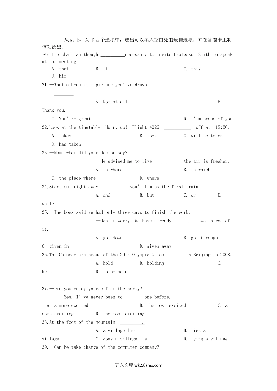 2006年四川高考英语真题及答案.doc
