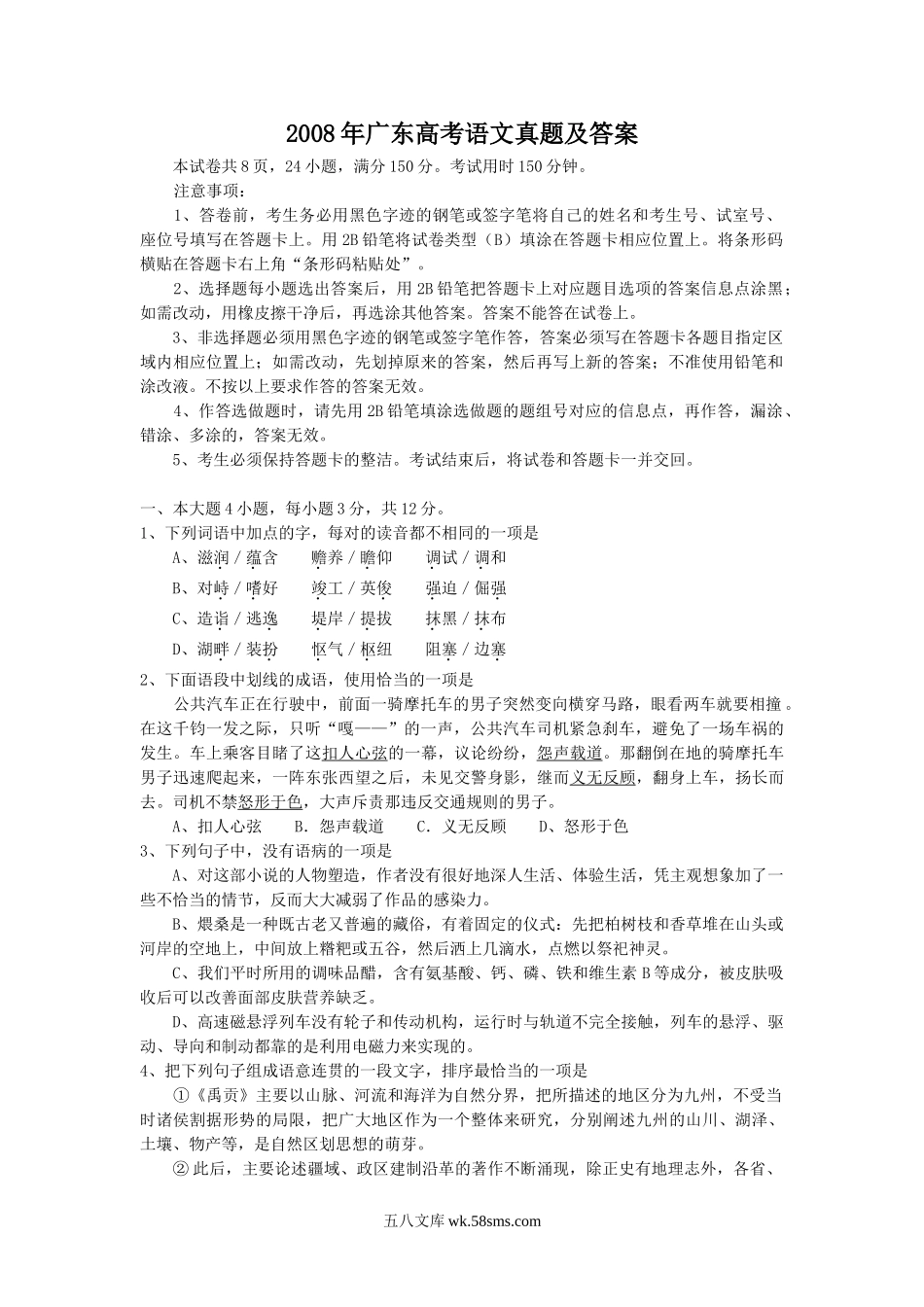 2008年广东高考语文真题及答案.doc_第1页