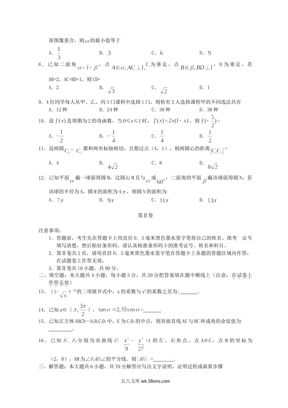 2011年河北高考文科数学真题及答案.doc_第2页