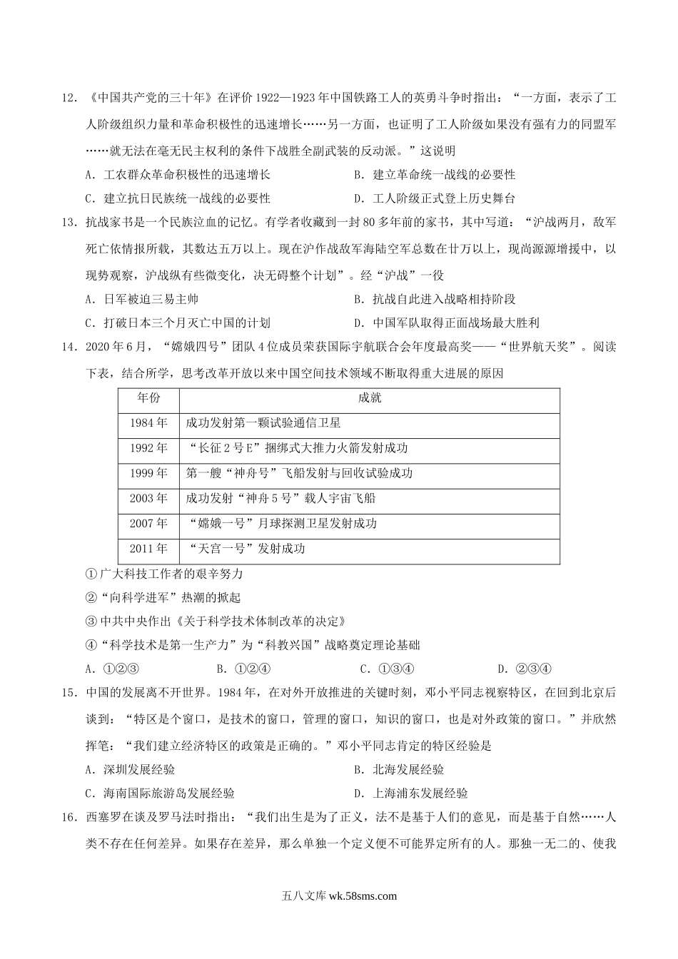 2020年浙江高考历史试题及答案.doc_第3页