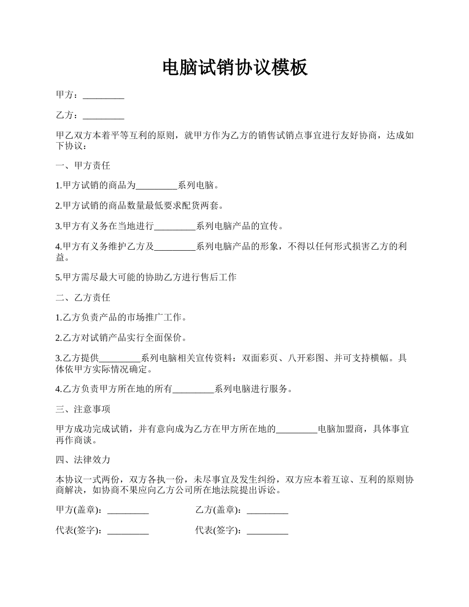 电脑试销协议模板.docx