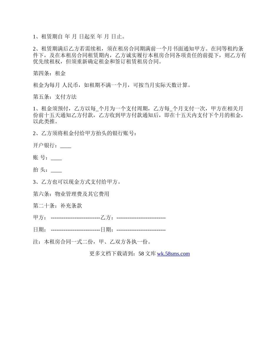 租房合同通用模板租房合同租房合同编号:()租房合同出租方:___(以下简称甲方)联系地址:______证件号码:______电话:______传真:______邮政编码:______租房合同承租方:___(以下简称乙方)联系地址:______证...