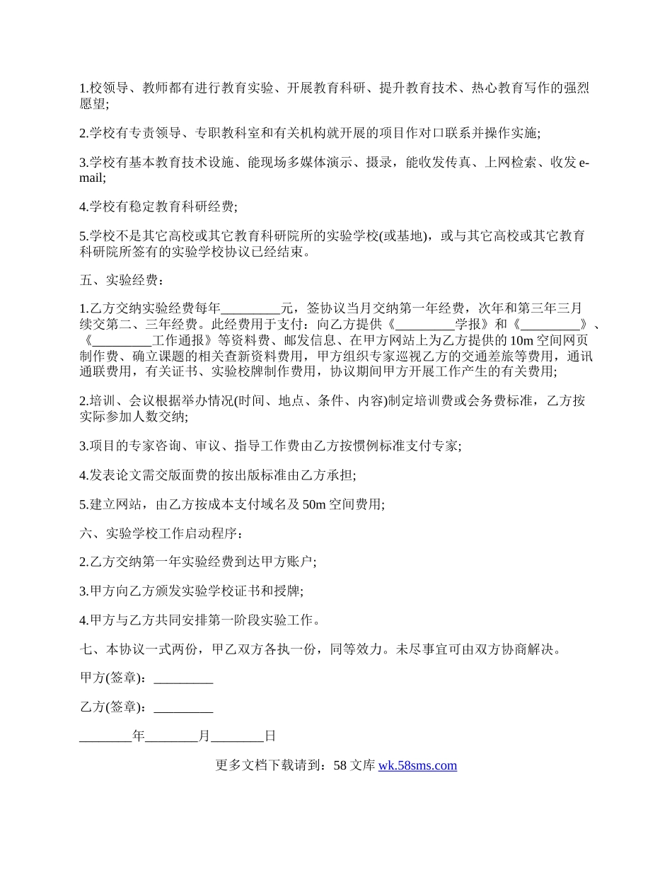 院校合作的协议范文甲方:_________________乙方:_________________学校为加强高校与普通中小学在教育管理、教育科研、教育技术、教育出版等方面的互相合作,甲乙双方就确定_________学校成为《_________实验学...