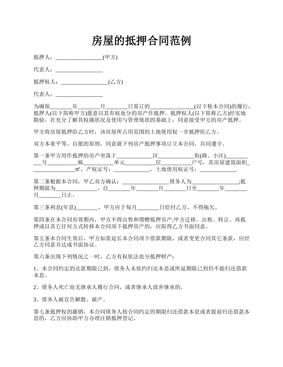 房屋的抵押合同范例.docx